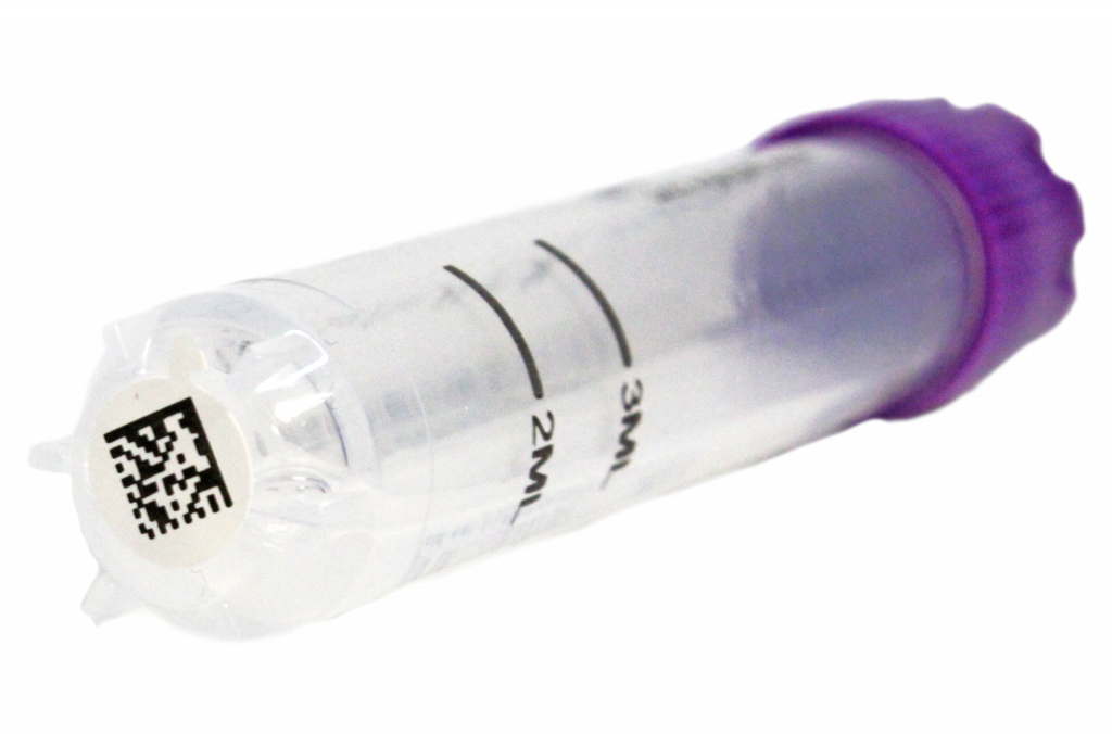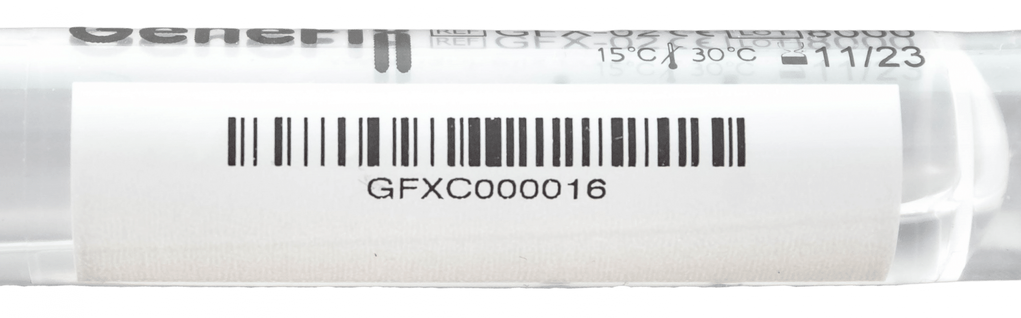 Easy and accurate sample tracking is a key component of sample collection and isolation. All GeneFix Saliva Collection tubes include a unique 10-digit, alphanumeric 1D barcode on the side of the tube which allows for full traceability of the sample from production to distribution and testing. Tubes can be specified with a 2D barcode on the base of the tube that corresponds with the 1D barcode on the side. Having a 2D barcode available on the base of the tube allows automation systems to scan the barcodes while in racking to maintain traceability when using high-throughput methods. Barcodes printed in triplicate on cryogenic labels are also available for attaching to tubes or paper. All barcodes are scannable on common readers, including those widely available on mobile phones, so that even patients at home can scan their devices to provide additional traceability.