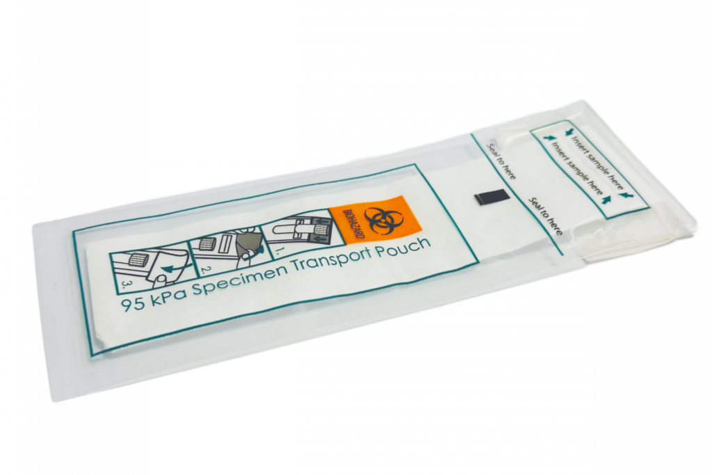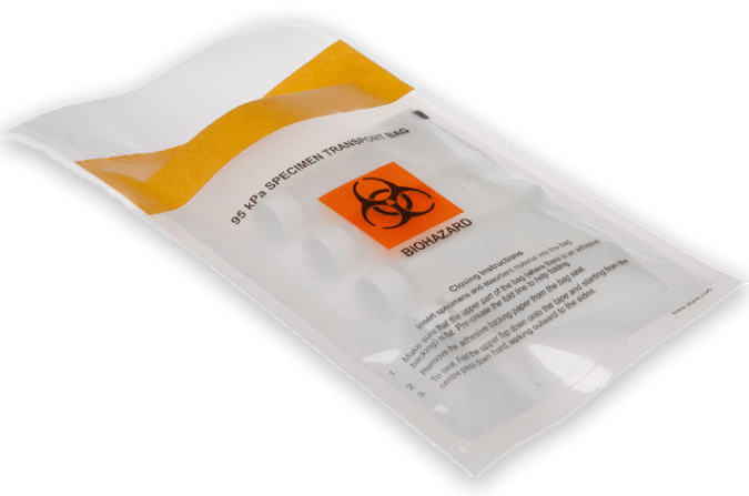 • Transport packs are suitable for saliva and swab samples and include an absorbent pad to contain leakages, a separate document pocket, and are tested to resist 95kPa.